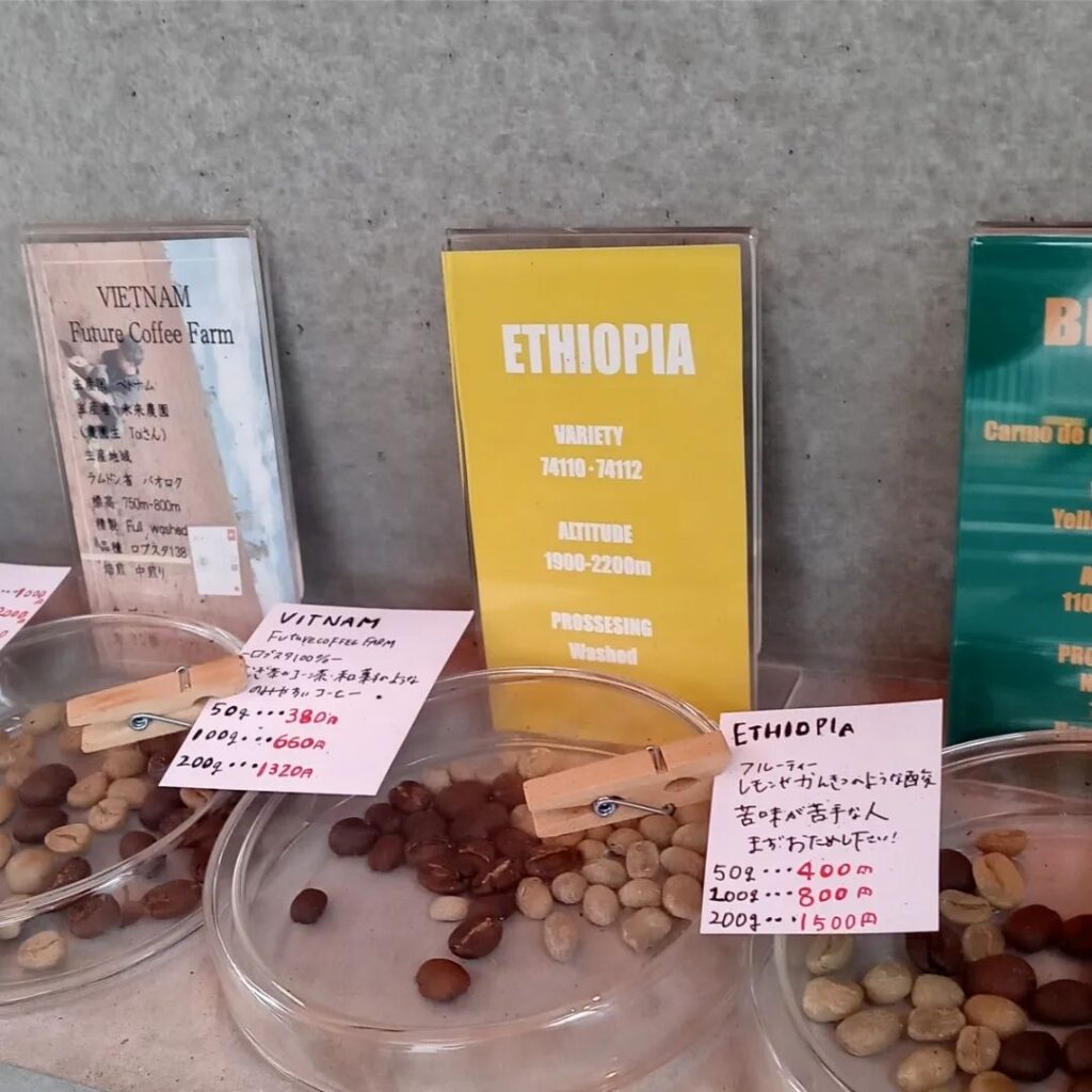 焙煎したコーヒー豆、テイクアウトのコーヒーを販売されてます。