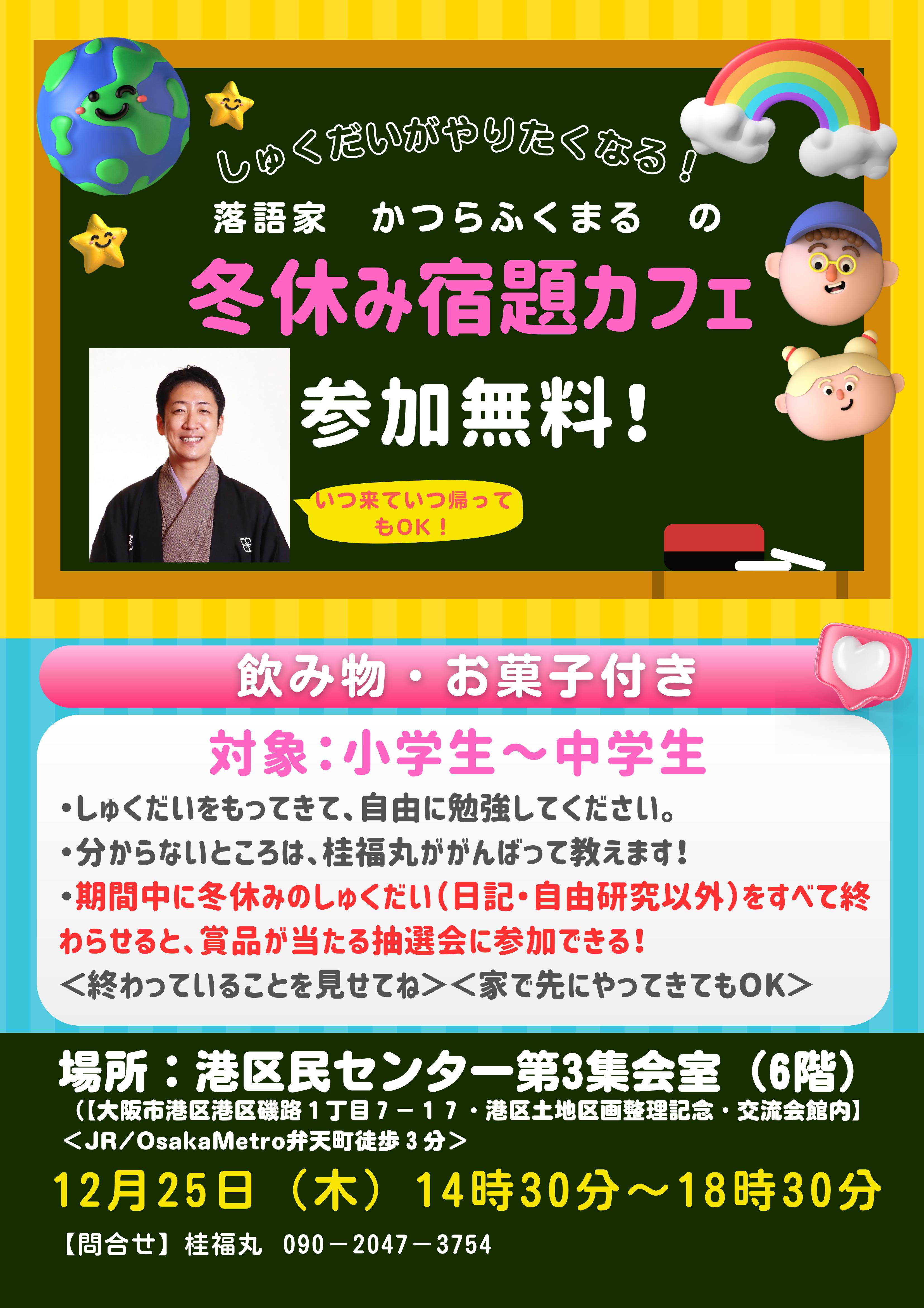 ◆落語会ではありません◆かつらふくまるの宿題カフェ<大阪・港区民センター> @ 港区民センター・6階第3集会室